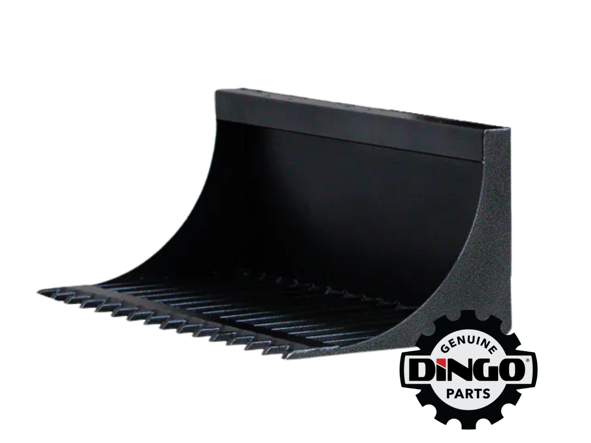 The Dingo Rock Bucket is specifically crafted to handle tasks involving rocks and debris for purposes of site cleanup, ground levelling and sifting